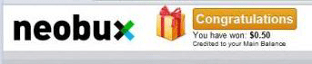 The prizes are in cash and they are added automatically to your account (Main Balance). The maximum amount that I received is $0.5, two times. In addition, I have won $0.25, well as points. They also play an important role in NEOBUX strategy.